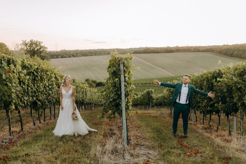 Na párové focení jsme se vydali do místních vinic v okolí Stodoly pod lesem. Vinice na Vysočině nabídly otevřený prostor, klid a nádherné světlo, které je ideální pro romantické a nadčasové svatební fotografie.