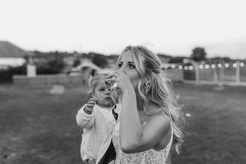 Svatební den začal v poklidné domácí atmosféře obklopené nejbližší rodinou nevěsty. Od prvních chvil bylo jasné, že tahle svatba bude hlavně o blízkosti a vztazích. Terezka a Tom mají malou dcerku, která dodávala svatbě ještě hlubší rozměr. Během příprav nevěsty se o péči staral především dědeček s babičkou. Na krátkou procházku, nakrmit, uspat... Nevěsta Terezka tak měla prostor na pohodové svatební přípravy. Ženich Tom se připravoval již na místě obřadu a hostiny, ve Stodole pod lesem.